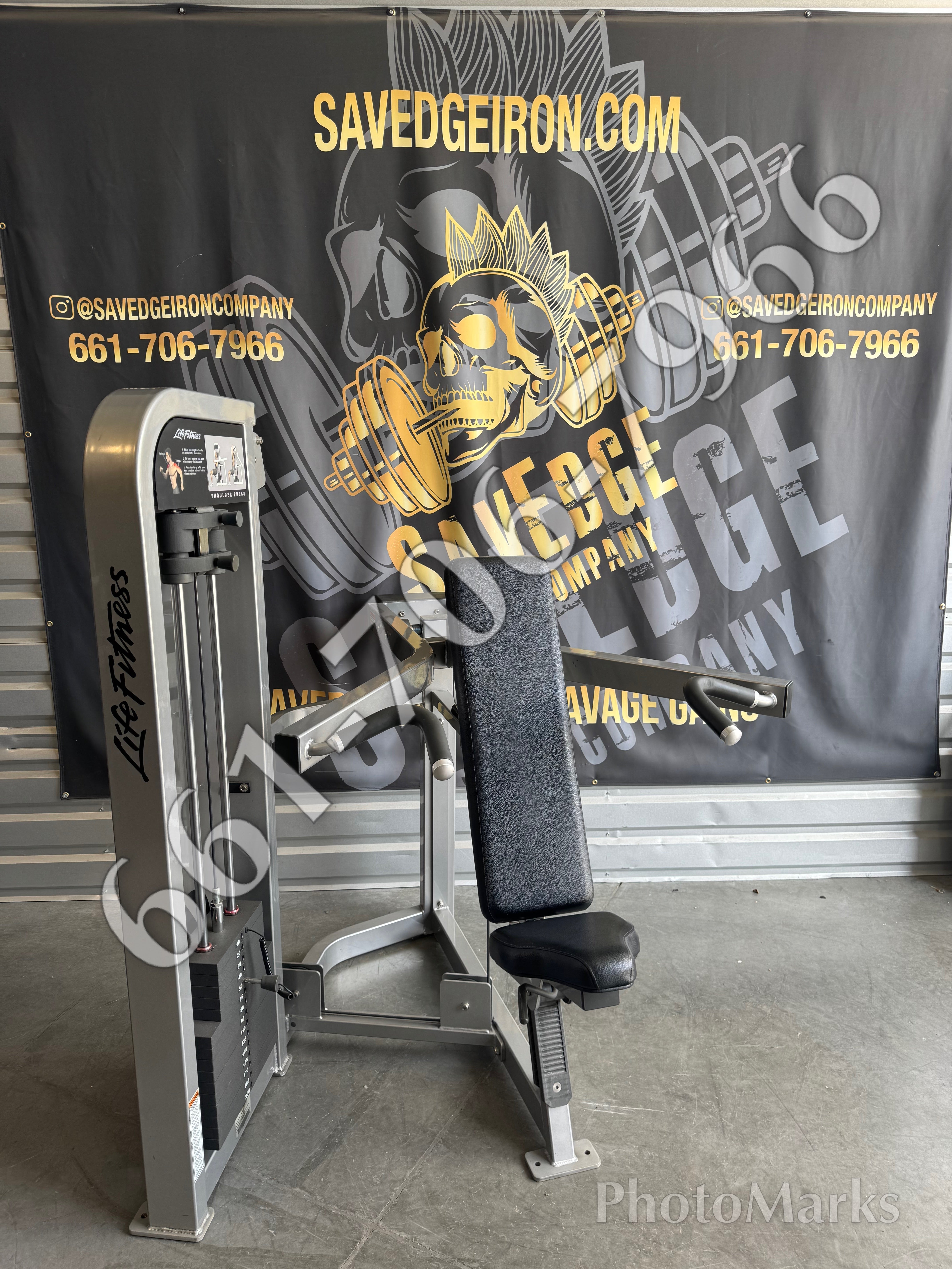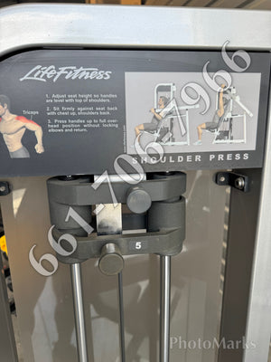 Life Fitness Pro 2 Shoulder Press. Very High-quality construction ensuring longevity. Smooth and consistent resistance throughout the movement. Ergonomic seat and backrest for optimal comfort. Adjustable settings to suit different user heights and preferences.