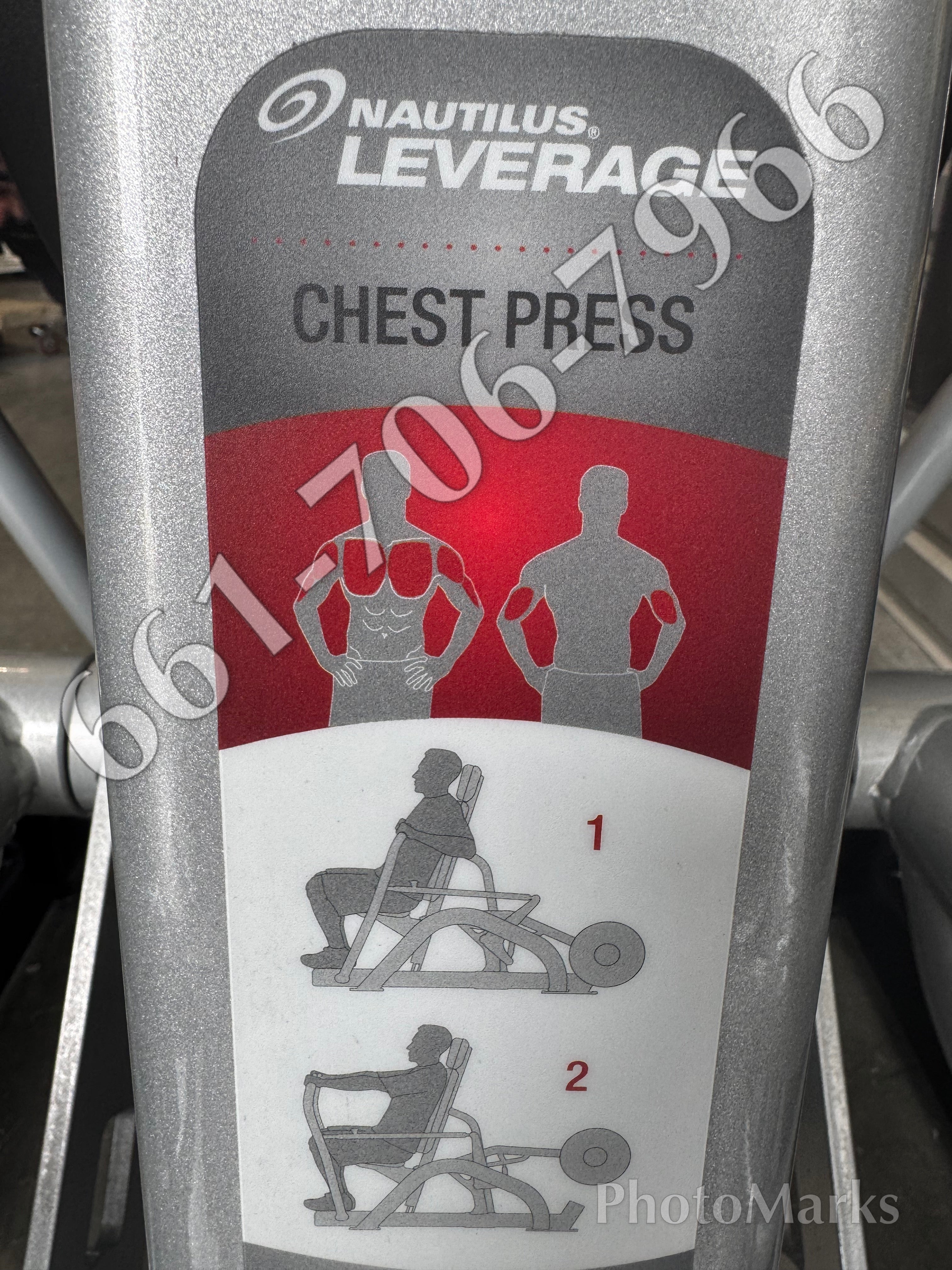 Nautilus Leverage Chest Press. Basically Brand New. Very comfortable and has multiple starting points with the arm adjustments. Very good looking machine.