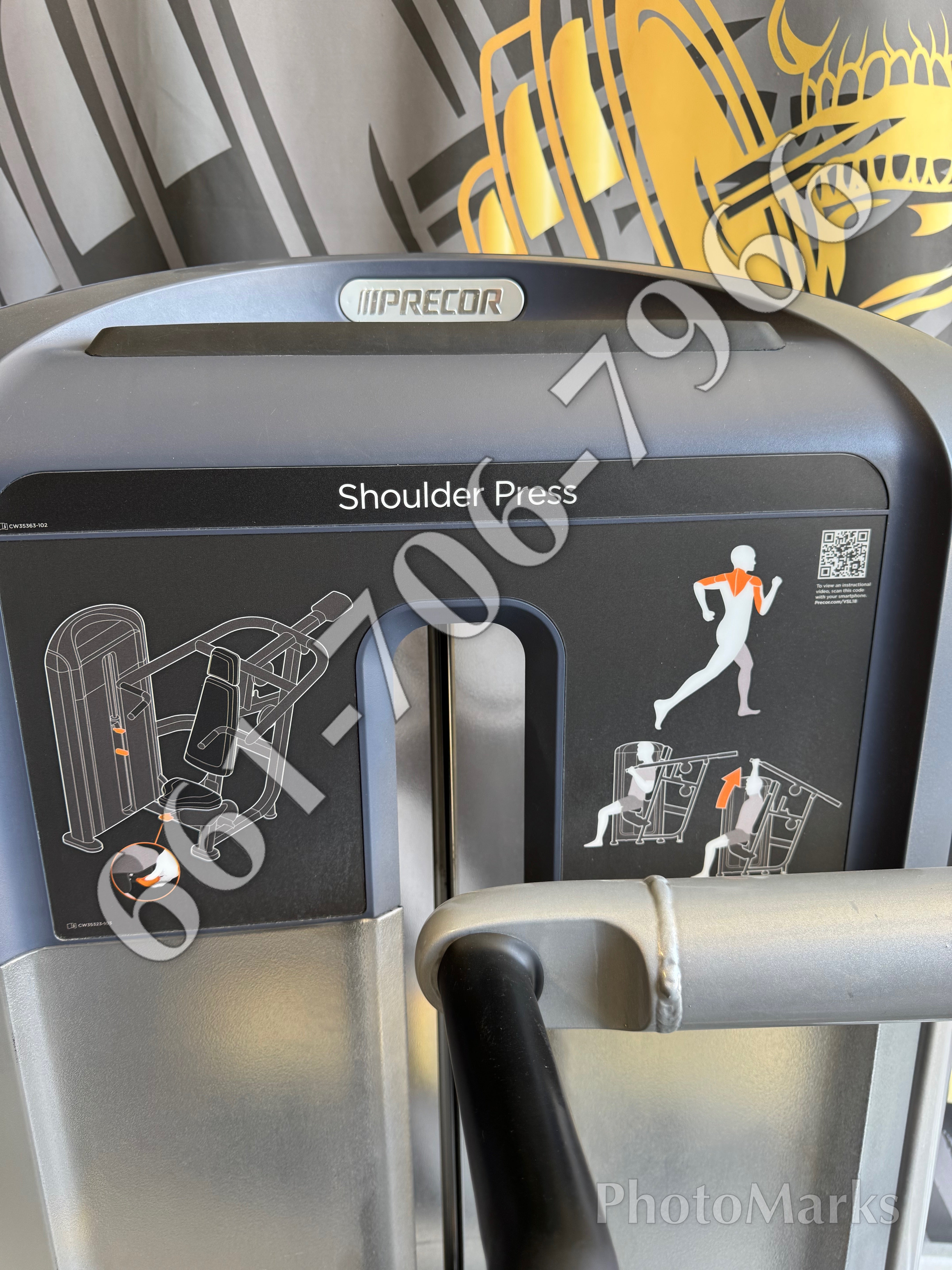 Precor Vitality Shoulder Press. The Vitality Series offers comfortable, oversized grips with multiple positions to accommodate a wide range of user sizes. The adjustable seat pad offers different desired start positions and helps proper form. Users can easily engage the add-on weight with a simple push of a lever to increase the work load.